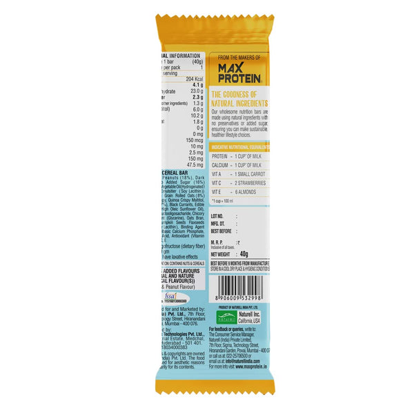 RiteBite Max Protein 4g Protein Bar, Peanut Butter | With Dark Chocolate | 0 Added Sugar, No Cholesterol & Trans Fat Snack Bar, 40g (Pack of 12)