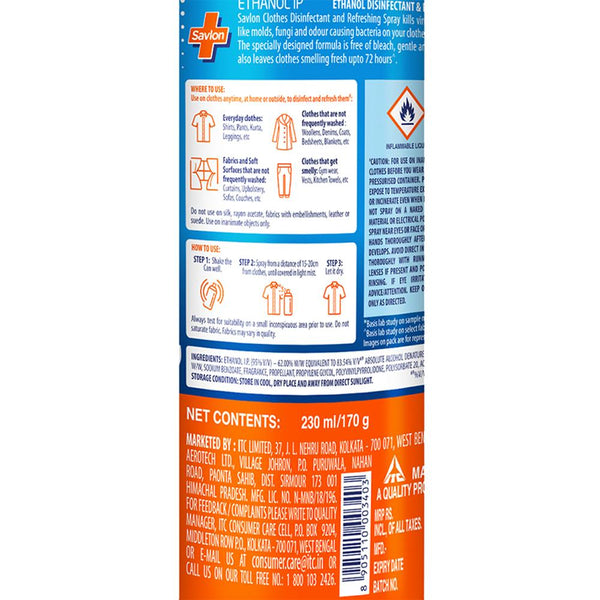 Savlon Clothes Disinfectant and Refreshing Spray - 230 ml