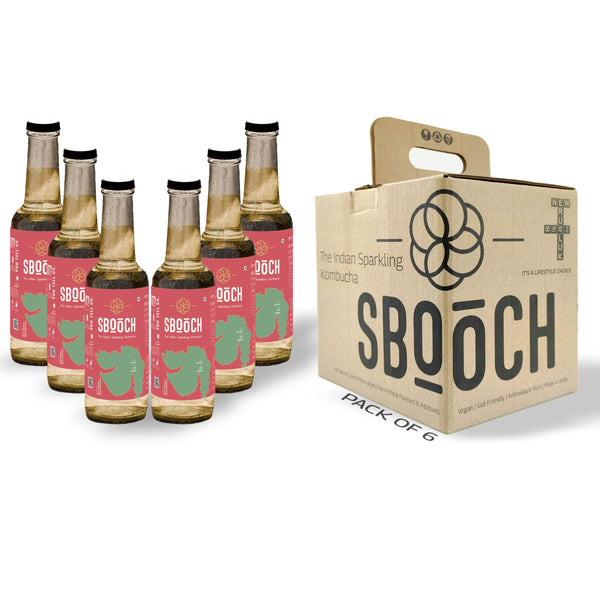 SBOOCH - Indian Sparkling Kombucha Tea | Gor Keri Flavor |275ml Pack of 6| Gut-Friendly Beverage | Antioxidant-Rich Zero Preservatives | Alcohol-Free Fermented Tea | Vegan & Gluten-Free