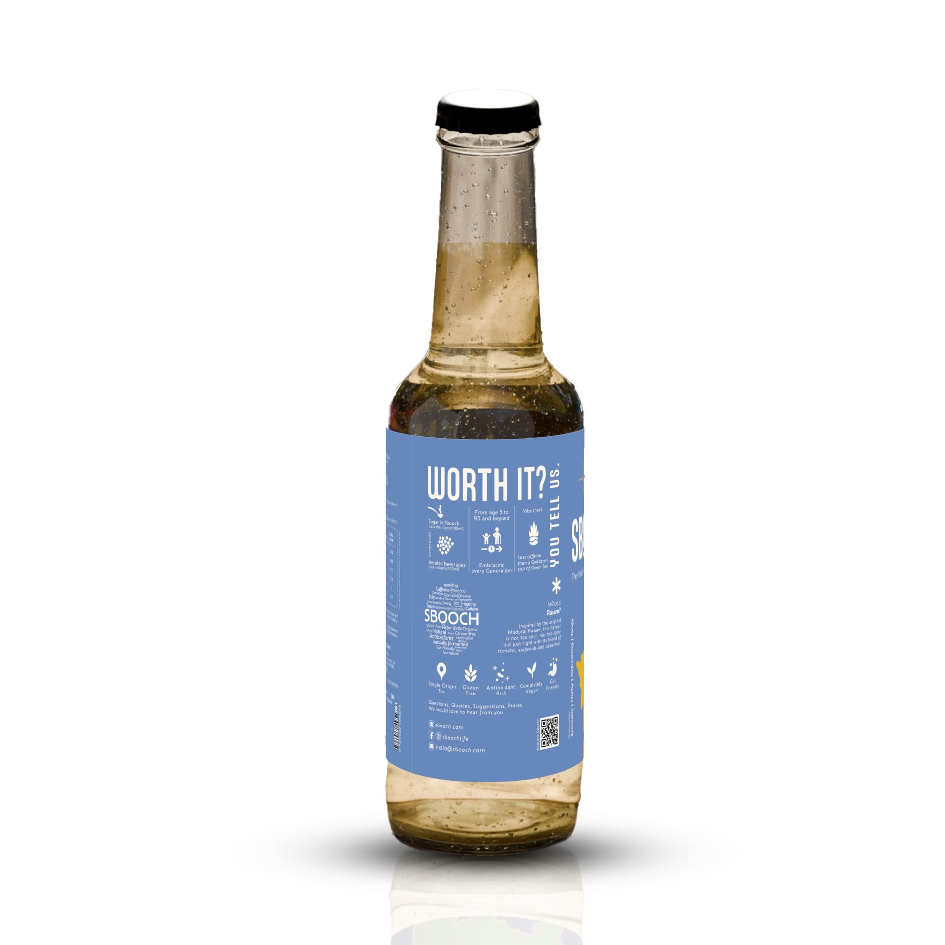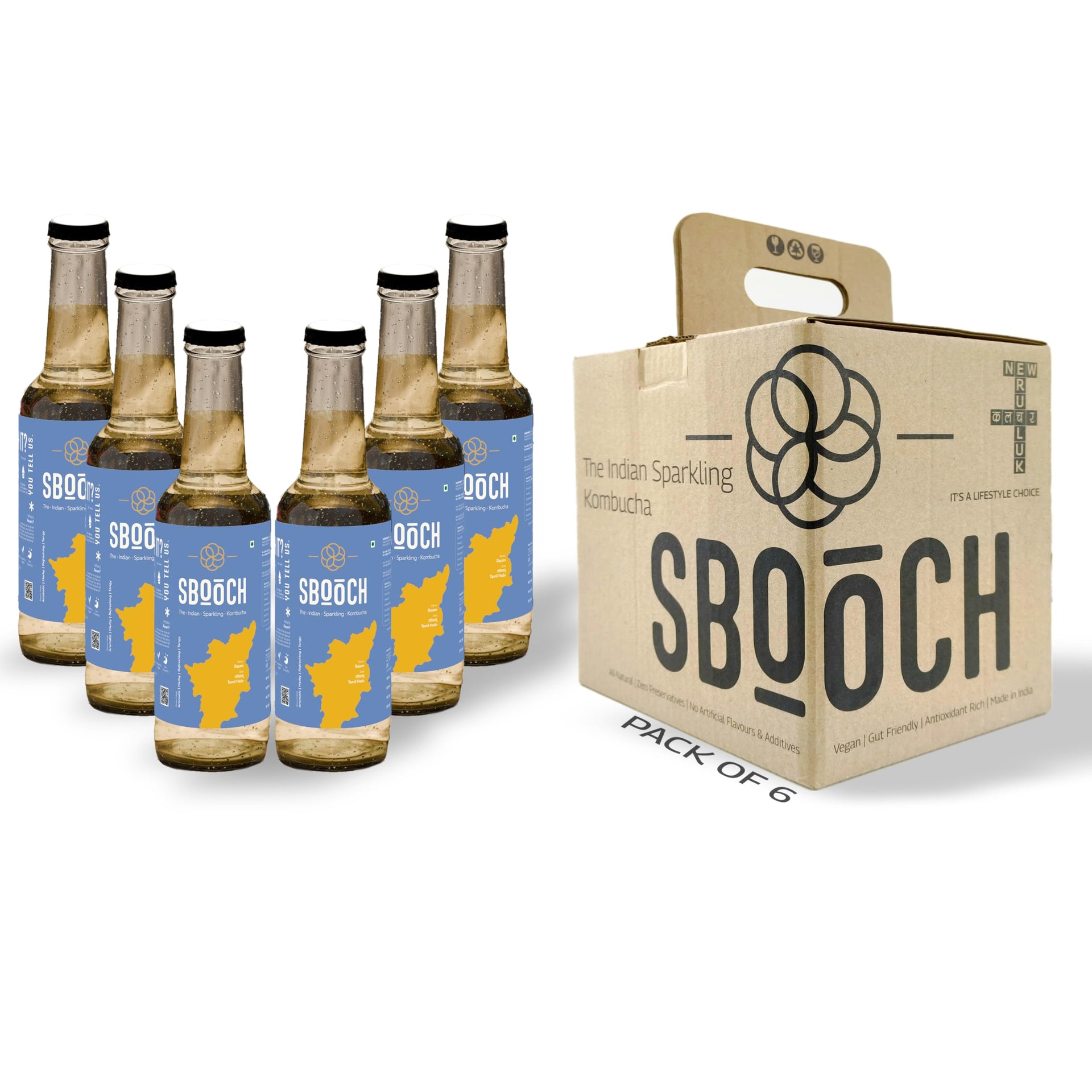 SBOOCH - Indian Sparkling Kombucha Tea | Rasam Flavor |275ml Pack of 6| Gut-Friendly Beverage | Antioxidant-Rich Zero Preservatives | Alcohol-Free Fermented Tea | Vegan & Gluten-Free