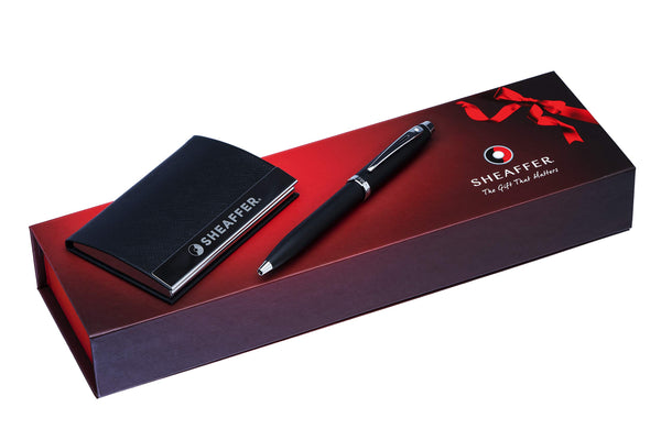 Sheaffer 9317 Gift 100 Ballpoint Pen – Matte Black with Nickel Plated Trim And Business Card Holder Combination