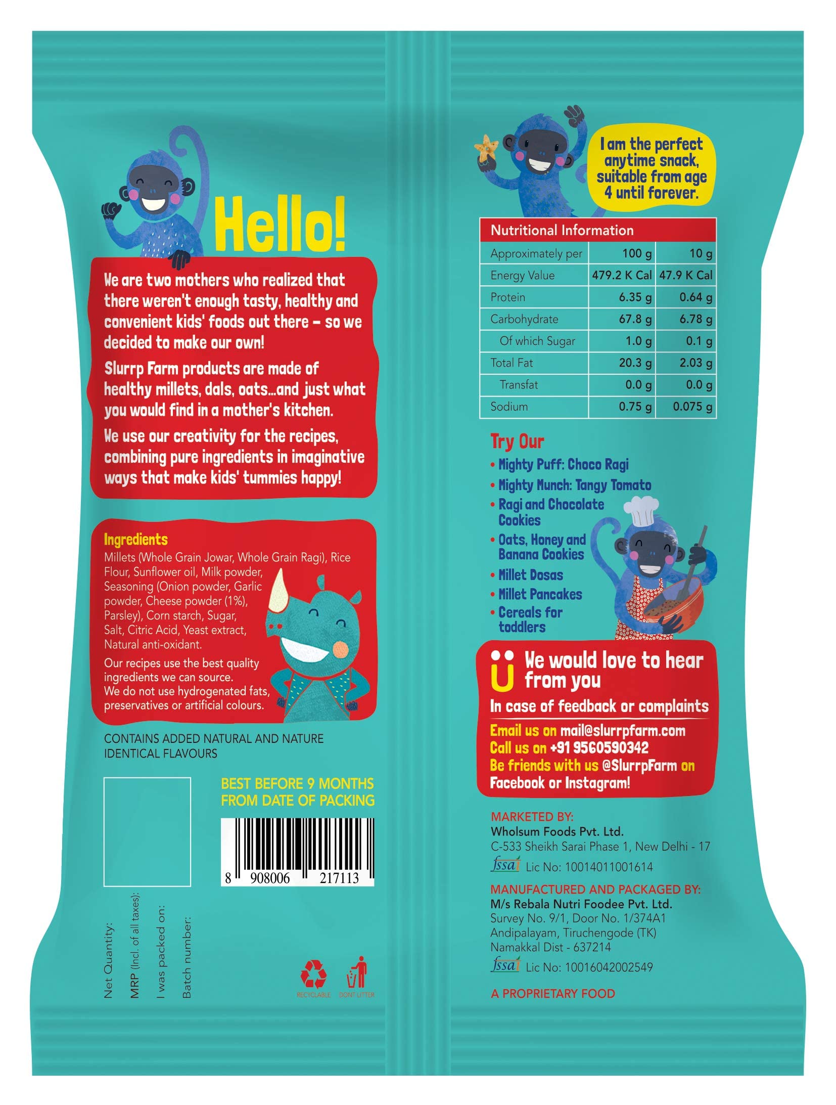Slurrp Farm Tasty Mighty Munch | Cheese and Herbs (Pack of 8)