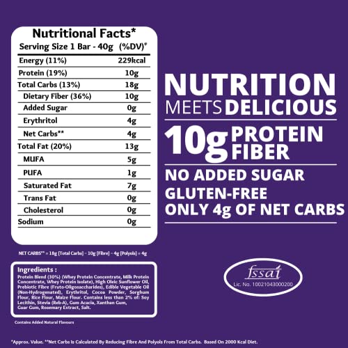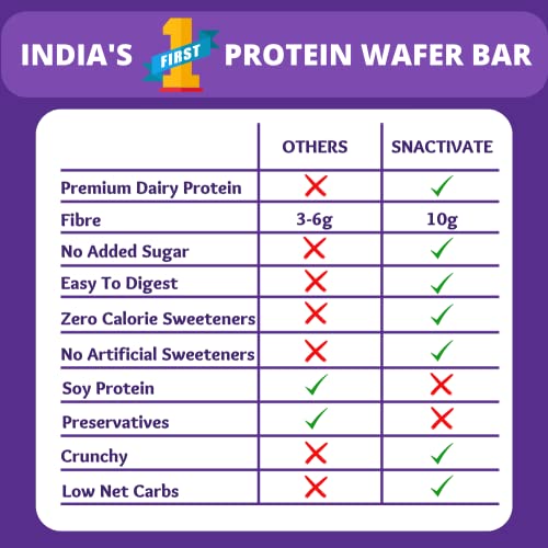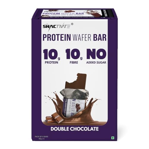Snactivate Protein Wafer Bars - Double Chocolate (Pack of 6), 10g Protein, 10g Fiber, Sugarfree, No Soy Protein, No Maltitol, Gluten Free, Tasty Wafer Based Protein Bar, 6*40 gm