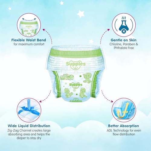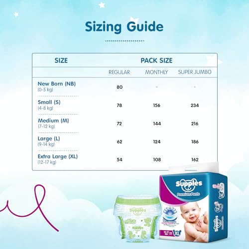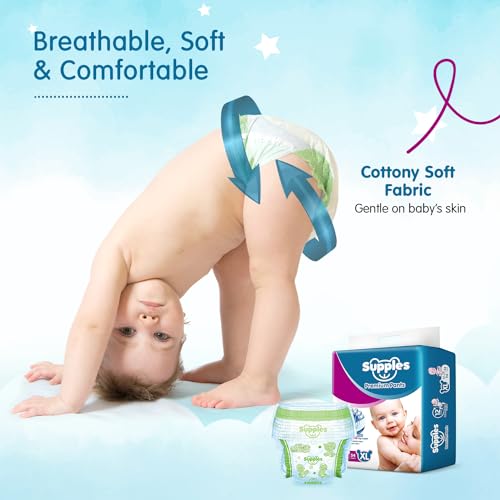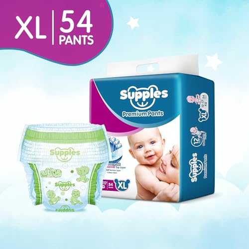 Supples Premium Diapers, X-Large (XL), 54 Count, 12-17 Kg, 12 hrs Absorption Baby Diaper Pants