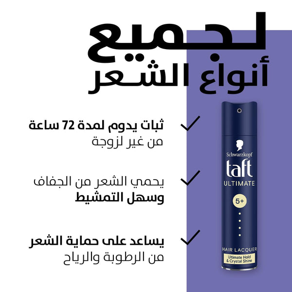 Taft Ultimate Hair Lacquer, Luminous Crystal Shine with Liquid Gloss Effect, Long Lasting Hold 5+