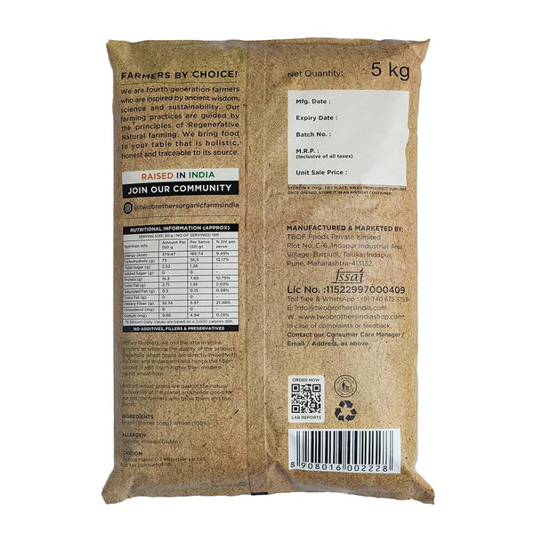 Two Brothers Organic Farms - Khapli Wheat Flour (5kg) | Wheat Flour | High Dietary Fiber for Easy Digestion | Stoneground Emmer Wheat Flour | Khapli Atta
