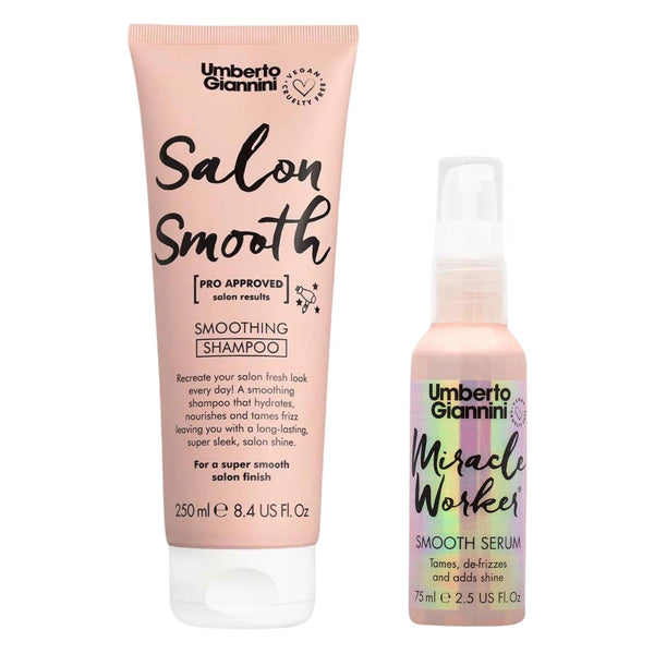 Umberto Giannini Salon Smooth Shampoo & Miracle Worker Smooth Serum | Silky, Frizz-Free Hair | Hydrating Shampoo & Frizz-Fighting Serum - Combo of 2