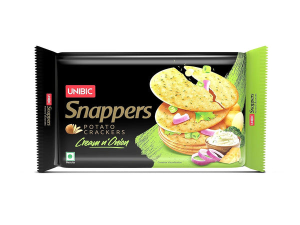 UNIBIC Foods Snappers Potato Crackers - Cream & Onion - 300 GMS