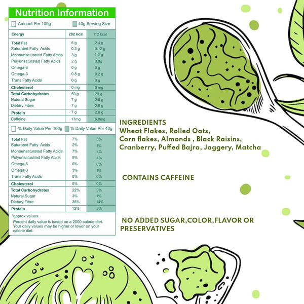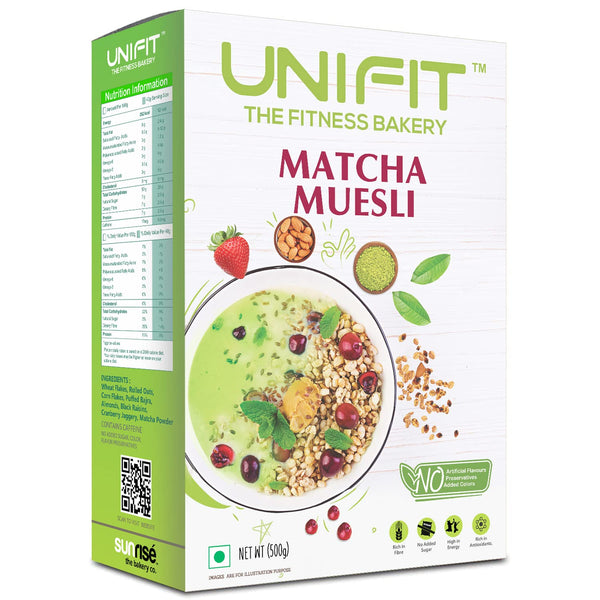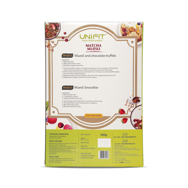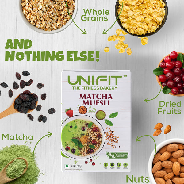 UNIFIT Muesli Cereal for Breakfast | Matcha Powder | Healthy Breakfast Cereals | High Protein Cereal Oats | Instant & Crunchy | Ready to Eat | With Goodness of Cranberries & Almonds | 500g