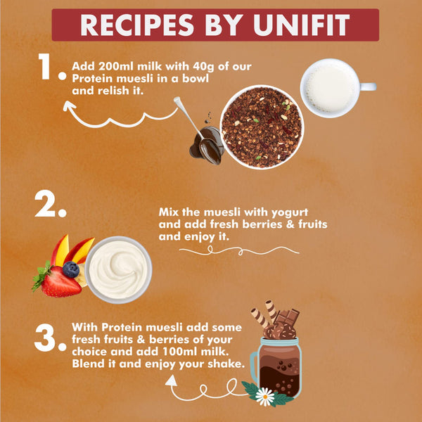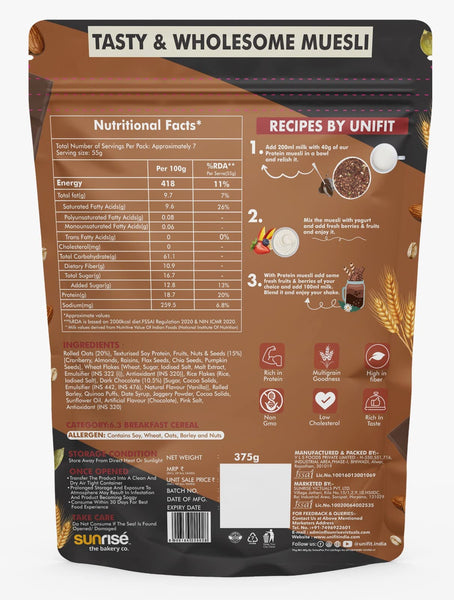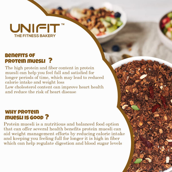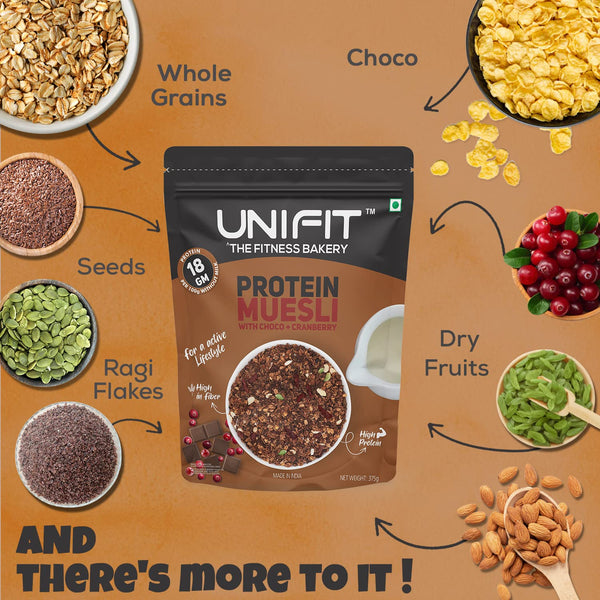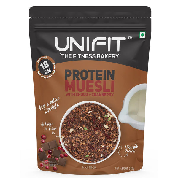 UNIFIT Muesli Cereal with Chocolate and Cranberry for Breakfast Healthy Breakfast Cereals High Protein Cereal Oats With Goodness of Muesli Chocolate and Cranberry -375g