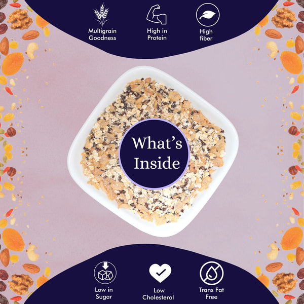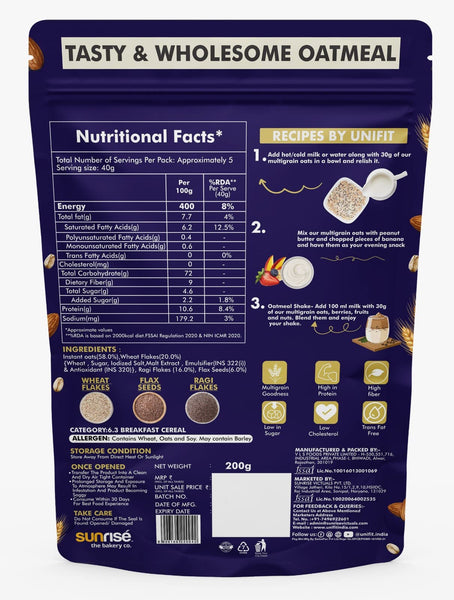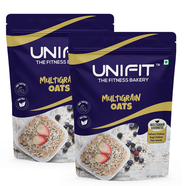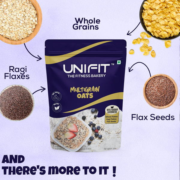 UNIFIT Multigrain Oats Breakfast Cereals High Protein Cereal Oats Instant & Crunchy Ready to Eat With Goodness of Wheat Flakes, Ragi Flakes & Flax Seeds Pack of 2 (200g each)