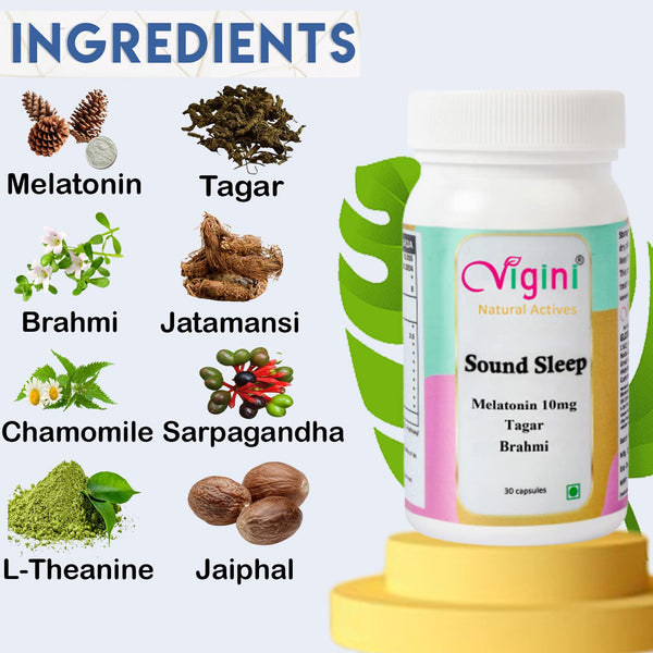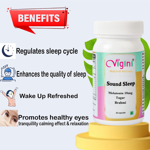 Vigini 10 mg Melatonin Tagar Brahmi Sound Sleep Capsules 30