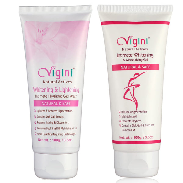 Vigini Natural Lightening Brightening Vaginal Intimate Feminine Hygiene Wash for Women & Lubricant Moisturizing Water Based Gel for Dryness Itching Non Staining Washable Sulphate Paraben Free 200g
