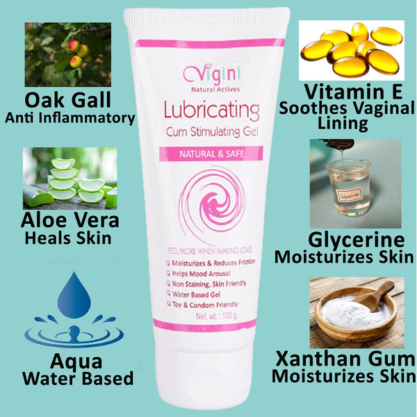 Vigini Natural Lubricant Lubricating Lube Lubrication Water Based Gel Jelly Women, Moisturizer, No Color No Fragrance Non Staining Itching Dryness Female 100G