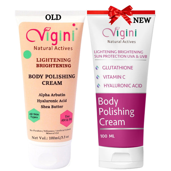 Vigini Skin Lightening Brightening Polishing Body Moisturizer Cream, Glutathione Vitamin C Hyaluronic Acid, Body Underarms Knees Elbows Dark Spots Pigmentation Tan Removal, Men Women 100ml