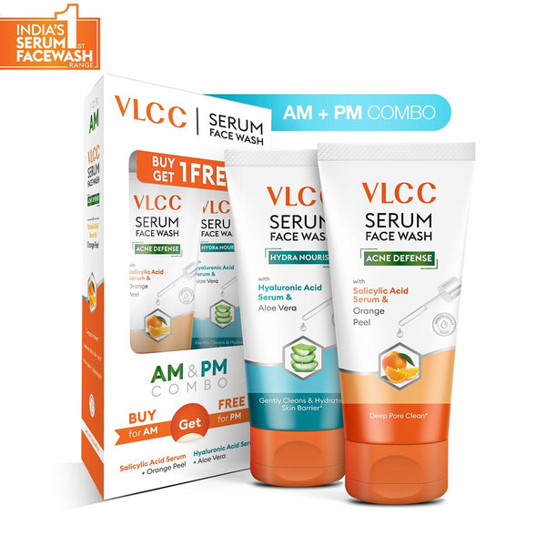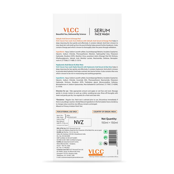 VLCC Salicylic Acid & Orange Peel Serum Face Wash for AM & Aloe Vera Serum Face Wash for PM (150 ml + 150 ml)