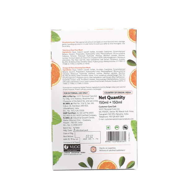 VLCC Tulsi Acne Clear Face Wash with FREE Orange Oil Pore Cleansing Face Wash (Buy 1 Get 1) (150 ml each)