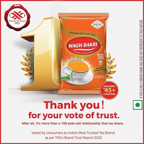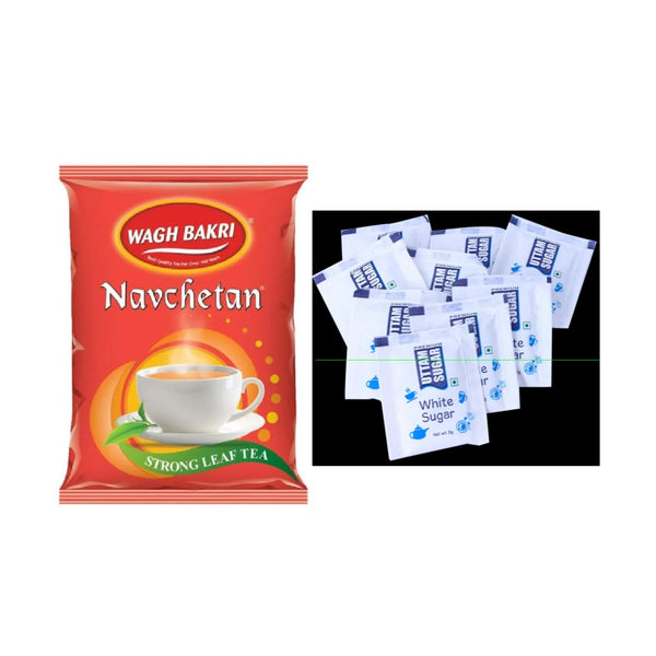 Wagh.Bakri Premium Assam Leaf Tea, Strong Taste & Refreshing Aroma, 250 Grams | Navchetan Danedar Chai, 250 Gm Pouch | Strong Leaf Tea Bag + Premium Sugar Sachets Pack Of 72