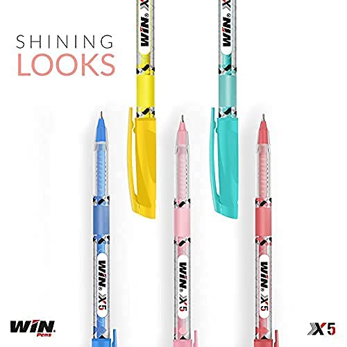 WIN X5 20Pcs Blue Ink|Multicoloured Body in 5 Pastel Shades|0.7 mm