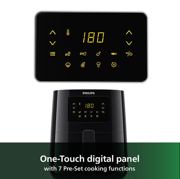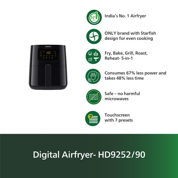 PHILIPS Digital Air Fryer HD9252/90 with Touch Panel, uses up to 90% less fat, 7 Pre-set Menu, 1400W, 4.1 Liter, with Rapid Air Technology (Black), Large