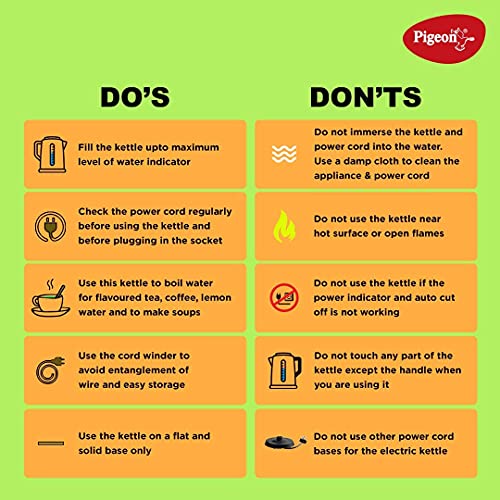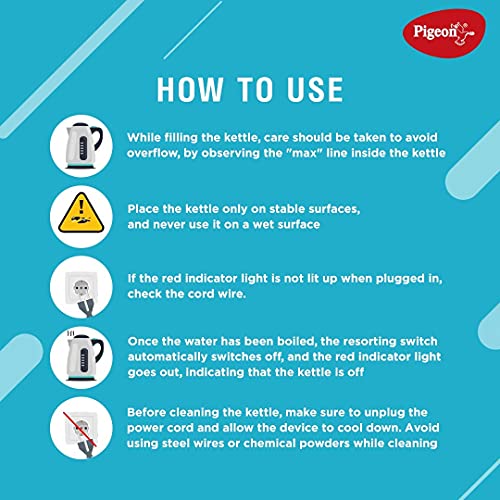 Pigeon by Stovekraft Amaze Plus Electric Kettle (14289) with Stainless Steel Body, 1.5 litre, used for boiling Water, making tea and coffee, instant noodles, soup etc. 1500 Watt (Silver)