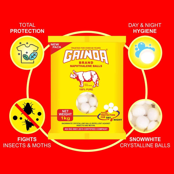GAINDA Naphthalene Balls White Kapoor Goli Stain-Free Anti-Insect, Repellant Mothballs Sanitary Cubes for Commercial Use Cloth Wardrobe, Almirah, Bookshelves, & Drawers - 1kg