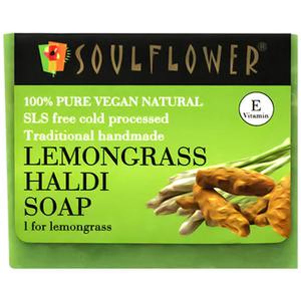 Soulflower Lemongrass Haldi Refreshing Handmade Soap For Oil Free Radiant Skin, Paraben Free