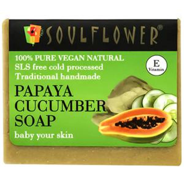 Soulflower Papaya & Cucumber Handmade Bathing Bar Soap For Men Women - Helps Skin Brightening