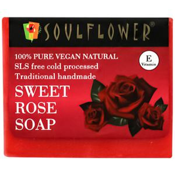 Soulflower Sweet Rose Anti-Aging Handmade Soap, Paraben Free Vegan Soap For Men & Women