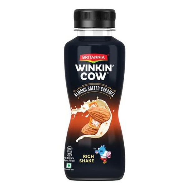 Britannia Winkin Cow Almond Salted Caramel Rich Milkshake - High In Calcium, 180 ml Pet Bottle