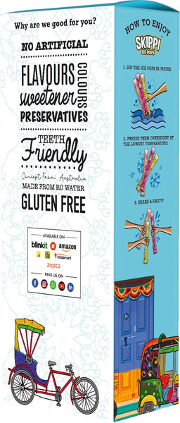Skippi All Desi Flavour Ice Pops Box. Kala Khatta, Rose, Jaljeera, Imli, Chilli Guava, Aam Panna (2 Qty of 6 Indian flavours, 12 Ice pops X 70ml each) 1KG
