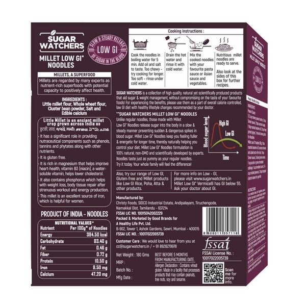 Sugar Watchers Low GI Millet Noodles, No Maida, Non-Fried, Diabetic Friendly 180G