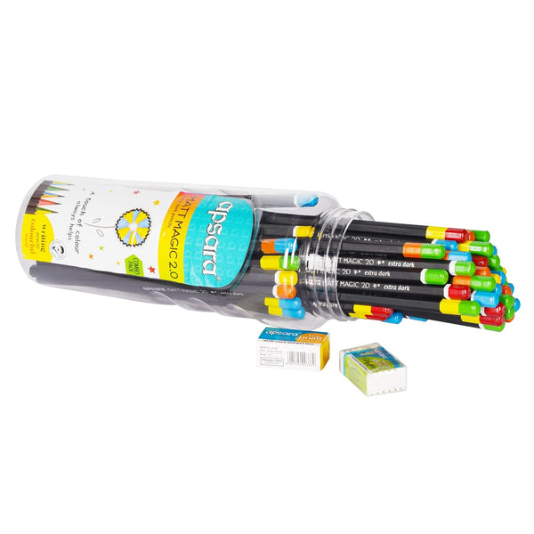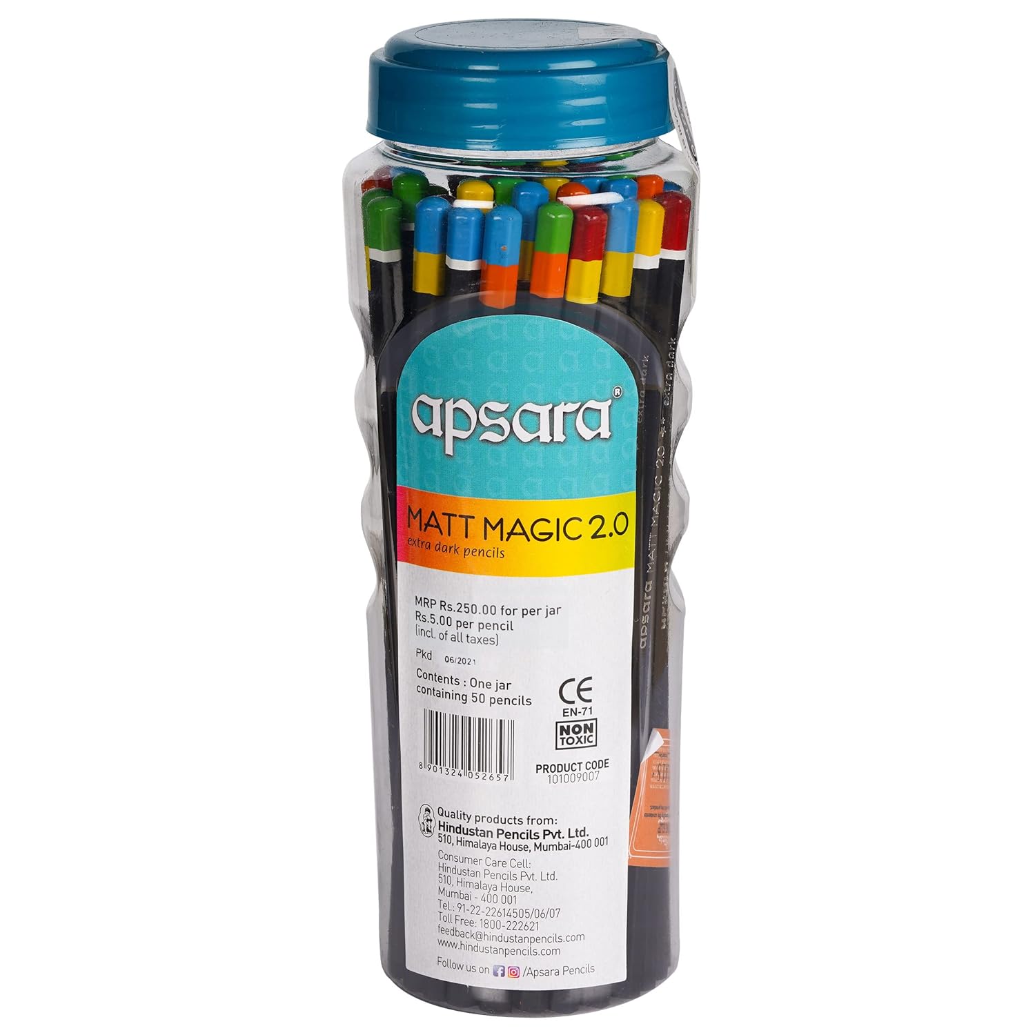 Apsara Matt Magic 2.0-50 pc jar pack - Free Sharpener & Eraser - Pack of 50 pencils