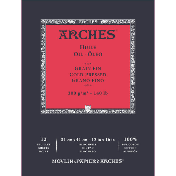 Arches Oil-Huile - 31Cm X 41Cm White Fine Grain/Cold Press 300 Gsm Paper - Short Side Glued Pad Of 12 Sheets