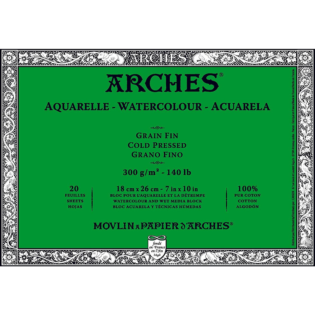 Arches Watercolour 300 Gsm Cold Pressed Natural White 18 X 26 Cm Paper Blocks- 20 Sheets