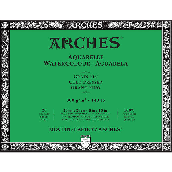 Arches Watercolour 300 Gsm Cold Pressed Natural White 20 X 26 Cm Paper Blocks- 20 Sheets