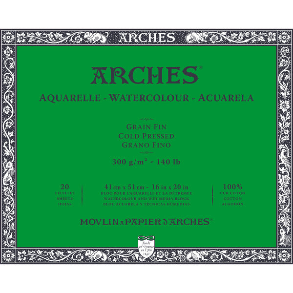 Arches Watercolour 300 Gsm Cold Pressed Natural White 41 X 51 Cm Paper Blocks- 20 Sheets