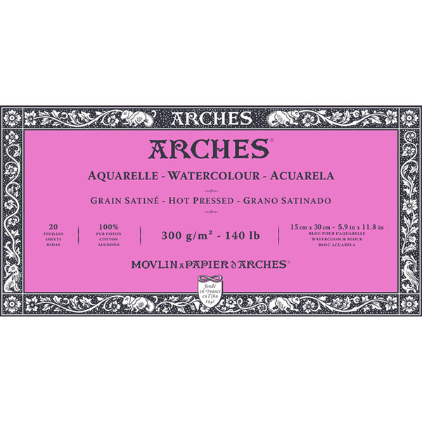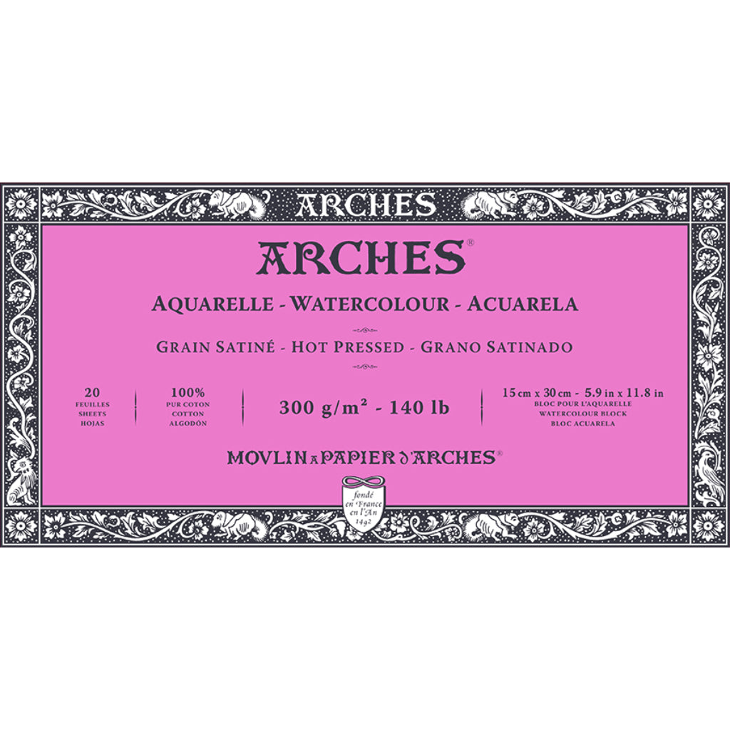 Arches Watercolour 300 Gsm Hot Pressed Natural White 15 X 30 cm Paper Blocks- 20 Sheets