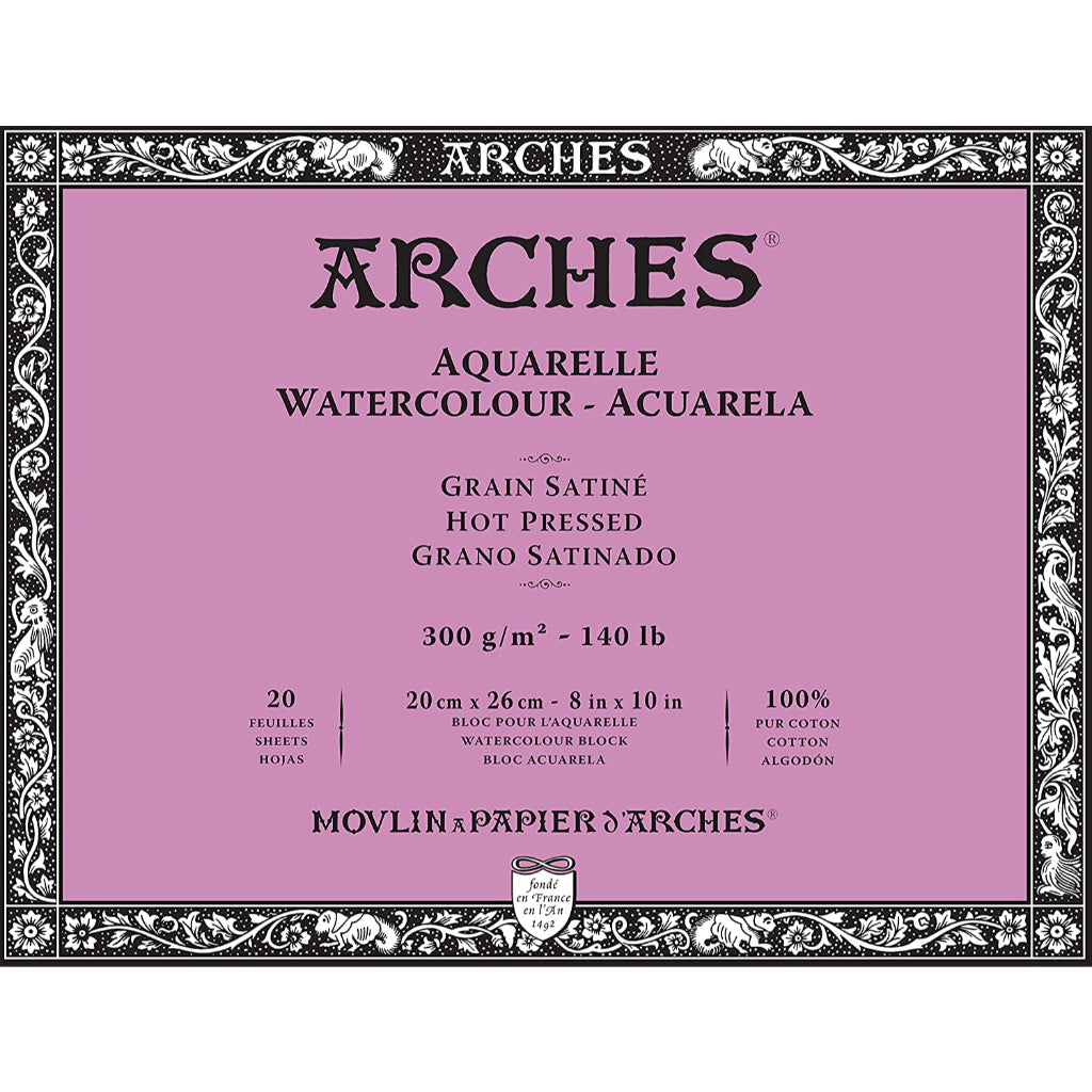 Arches Watercolour 300 Gsm Hot Pressed Natural White 20 X 26 Cm Paper Blocks- 20 Sheets
