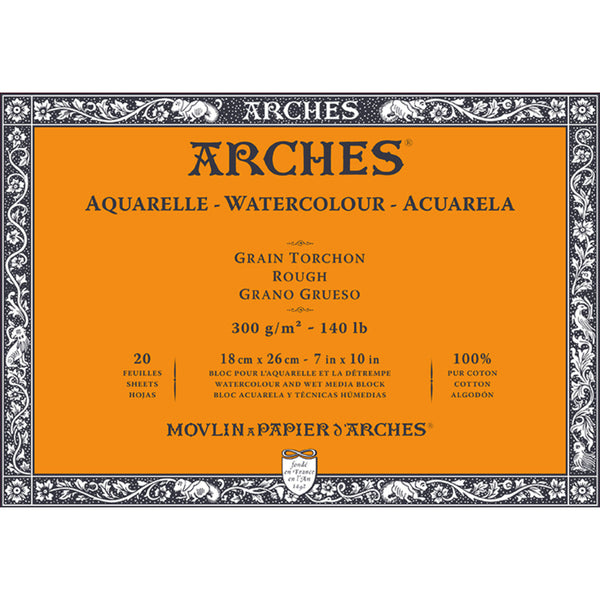 Arches Watercolour- Aquarelle - 18 Cm X 26 Cm Natural White Rough Grain 300 Gsm Paper- 4 Side Glued Pad Of 20 Sheets