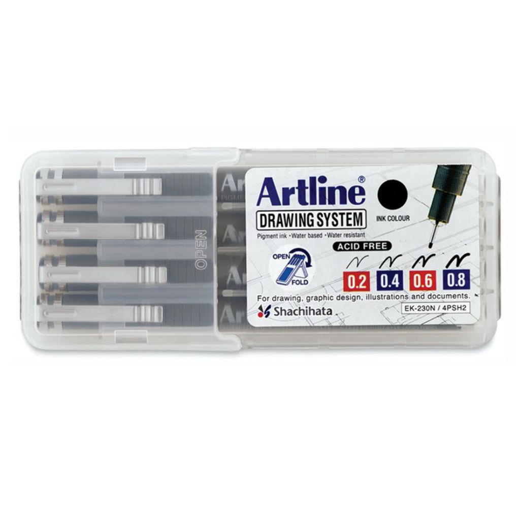 Artline EK-230N/4PSH2 -Drawing System Set Of 4 Plastic Case (0.2/0.4/0.6/0.8)-Black Ink