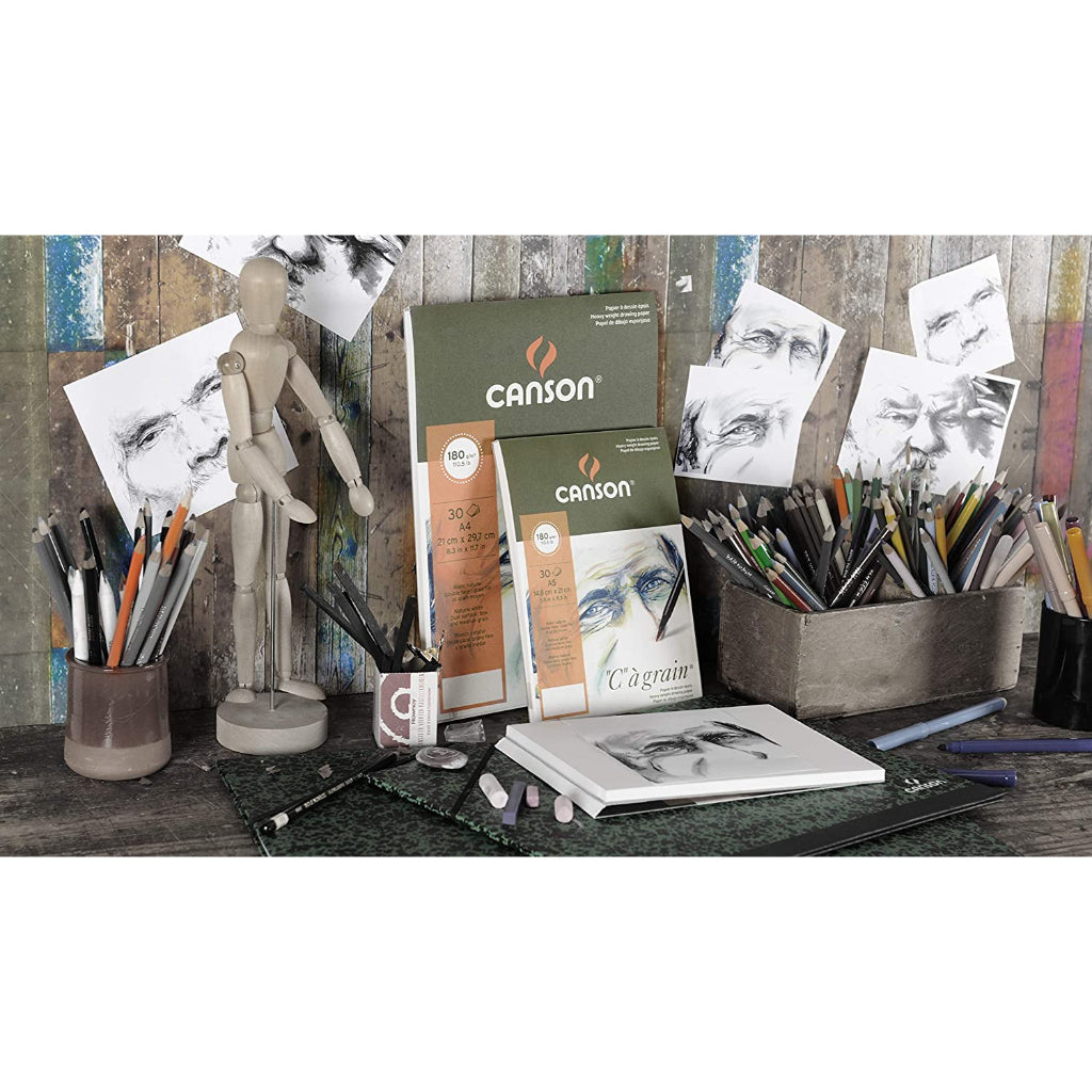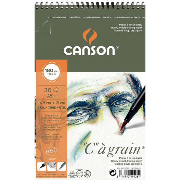 Canson C Grain Drawing 180 Gsm Fine Grain 14.8 X 22.7 Cm Paper Spiral Pad(Natural White- 30 Sheets)