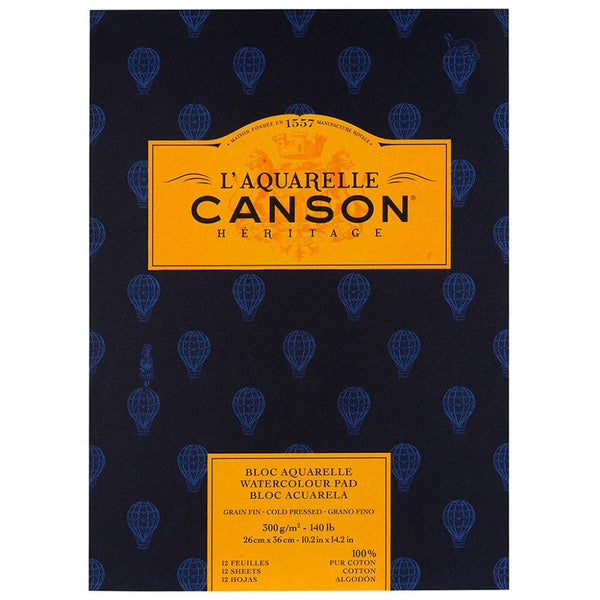 Canson Hritage Cotton 300 Gsm Cold Pressed 26 X 36 Cm Paper Pad(White- 12 Sheets)
