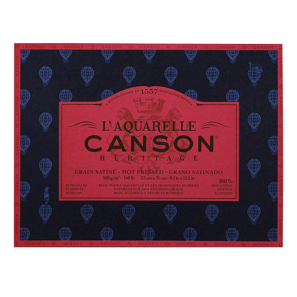Canson Hritage Cotton 300 Gsm Hot Pressed 23 X 31 Cm Paper Block(White- 20 Sheets)