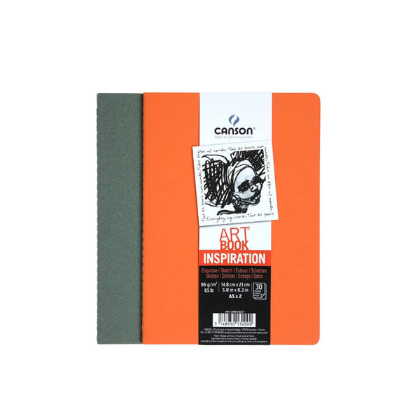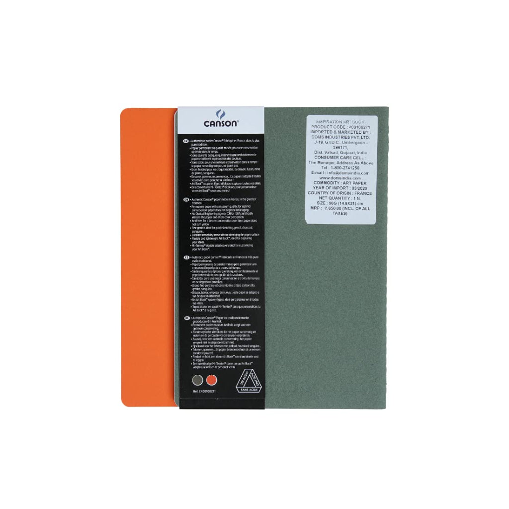 Canson Inspiration 96 Gsm Light Grain A5 Hardbound Books (Pack Of 2- Ivy & Orange- 30 Sheets)