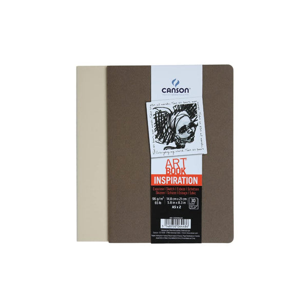 Canson Inspiration 96 Gsm Light Grain A5 Hardbound Books (Pack Of 2- Tobacco & Oyster- 30 Sheets)