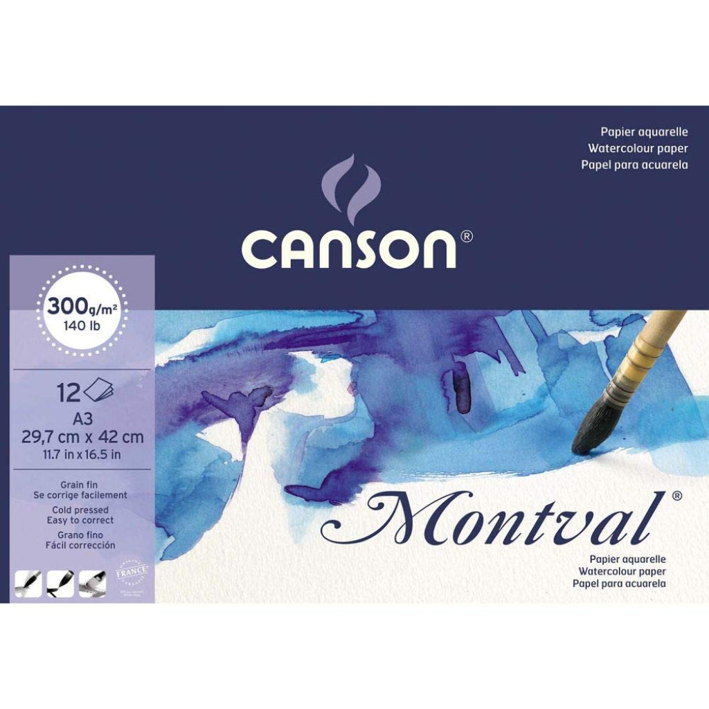 Canson Montval Watercolour 300 Gsm Cold Pressed A3 Paper Pad(White- 12 Sheets)