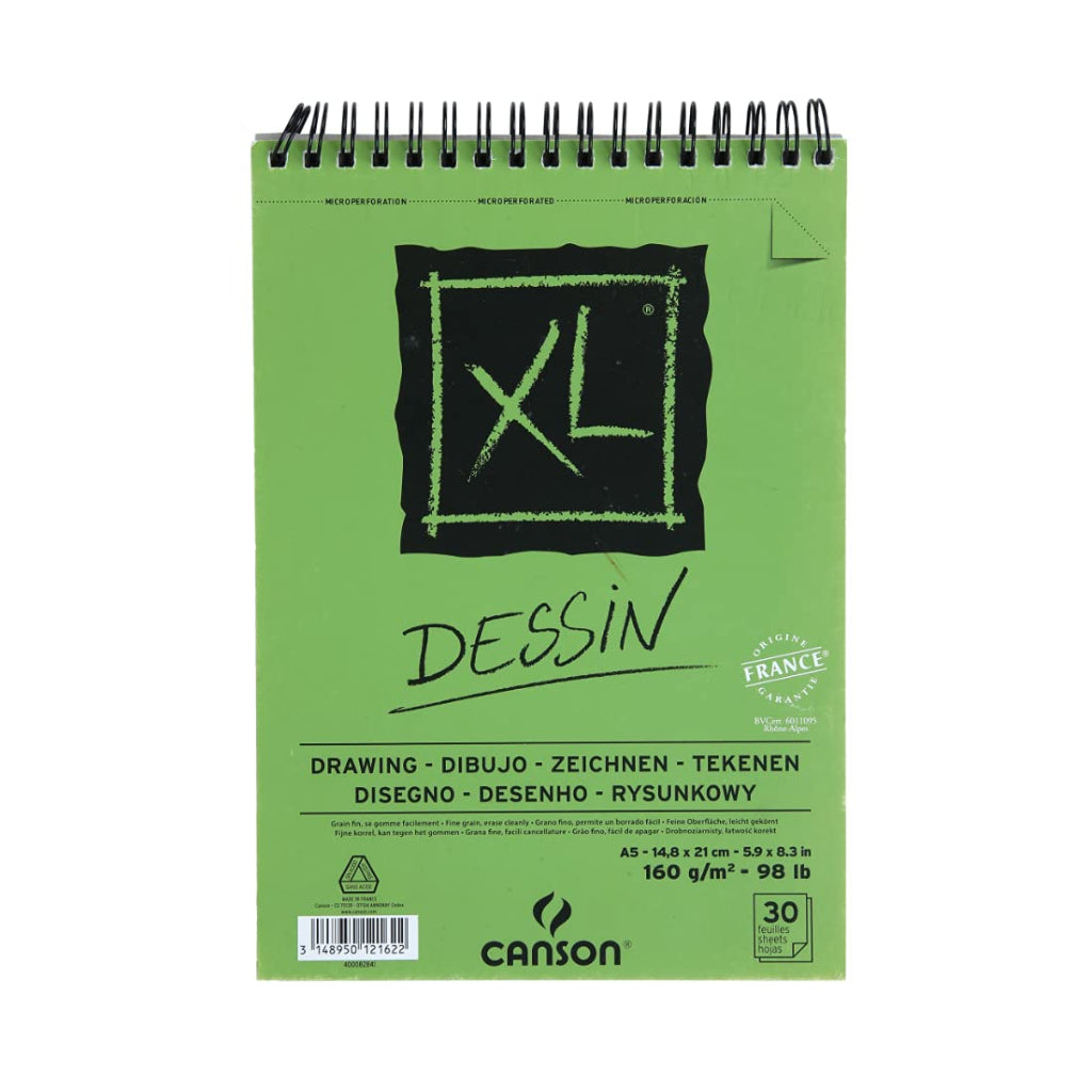 Canson Xl Dessin Drawing 160 Gsm Light Grain A5 Paper Spiral Pad(White- 30 Sheets)