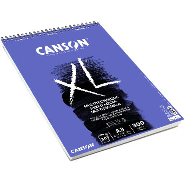 Canson Xl Mix-Media 300 Gsm Medium Grain A3 Paper Spiral Pad(White- 30 Sheets)