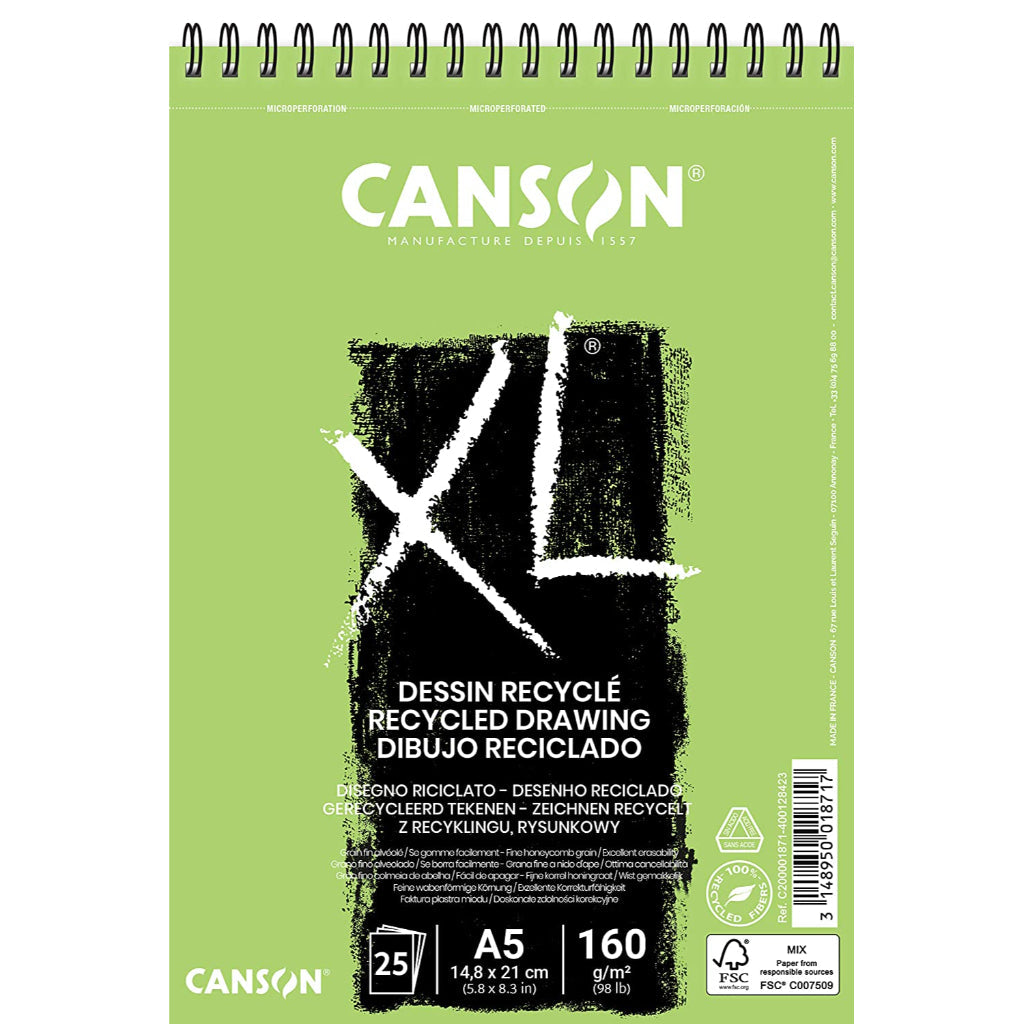 Canson Xl Recycled 160 Gsm Fine Honeycomb Grain A5 Paper Spiral Pad(White- 25 Sheets)